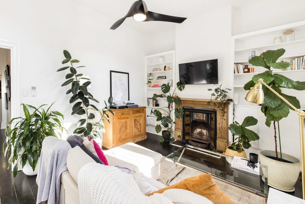 - Lounge room with split system AC and ceiling fan and lots of natural light